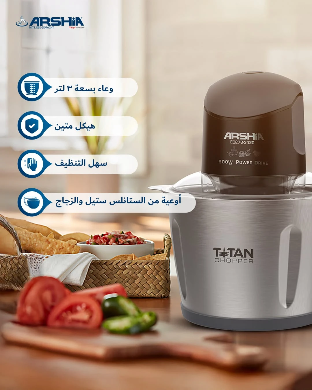 كبه كهرباء ارشيا كويكي سعه 3لتر 800 وات- 2 وعاء