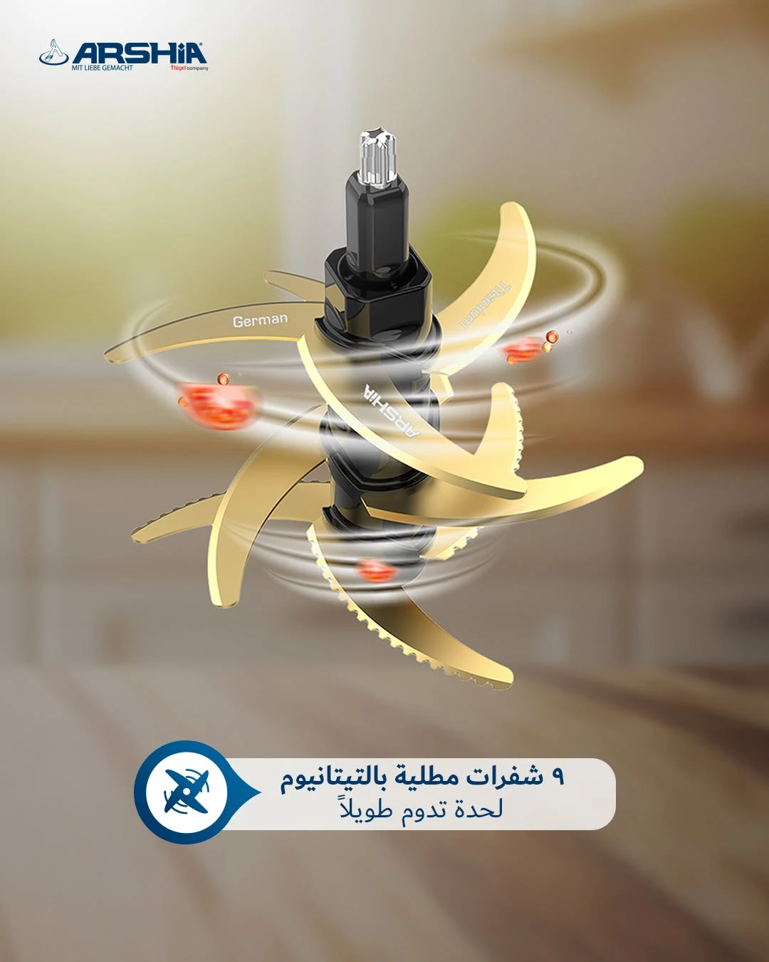 وعاء استيل + وعاء زجاج- 9 شفرات تيتانيوم